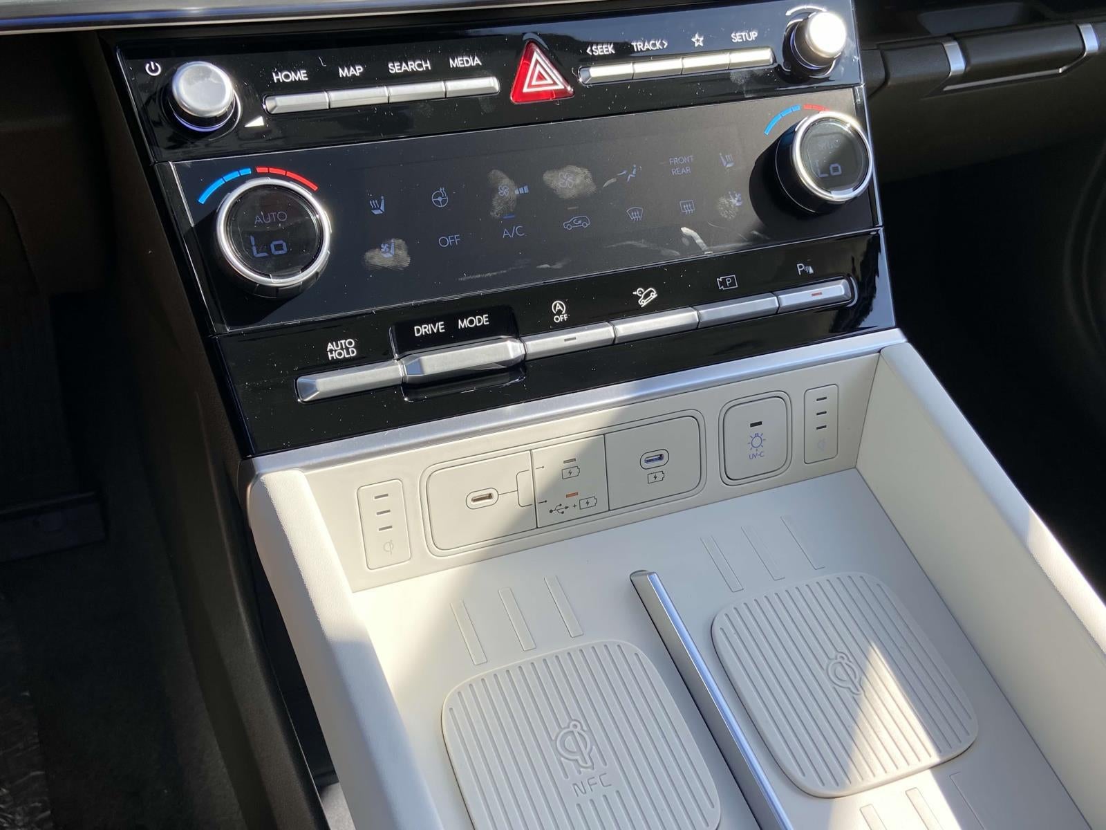 - Radio: AM/FM/HD Bose Premium Audio System -inc: 12 speakers including subwoofer, external amplifier, 12.3" wide touchscreen, Apple CarPlay and Android Auto, Bluetooth® hands-free w/wireless audio streaming, dynamic voice recognition, USB connectivity, SiriusXM, Blue Link+ connected car system, navigation system including traffic flow w/incident data via HD Radio (HERE) and rear seat quiet mode